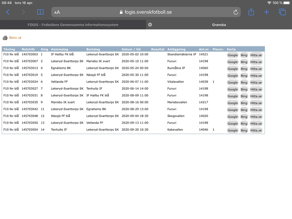 Hej! Här kommer de tider som gäller i nuläget för seriespel. De kan komma att ställas in eller ändras utifrån riktlinjer för covid-19, vi håller er uppdaterade.